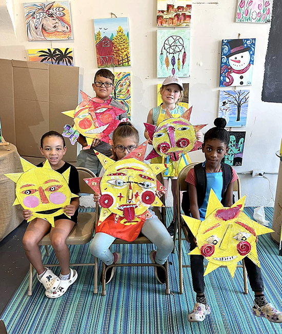 CAMPERS SHOW OFF THEIR finished projects during their time at the 10th Annual Art Camp at Armadillo Emporium last week where they learned drawing, painting, and sculpture.