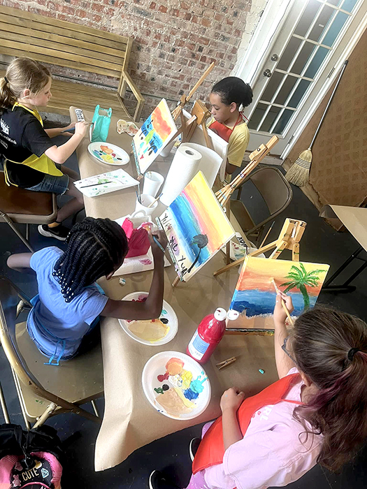 WORKING HARD ON THEIR paintings are attendees of the Armadillo Emporium Art Camp 2025.