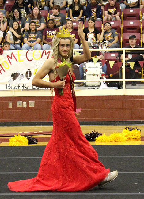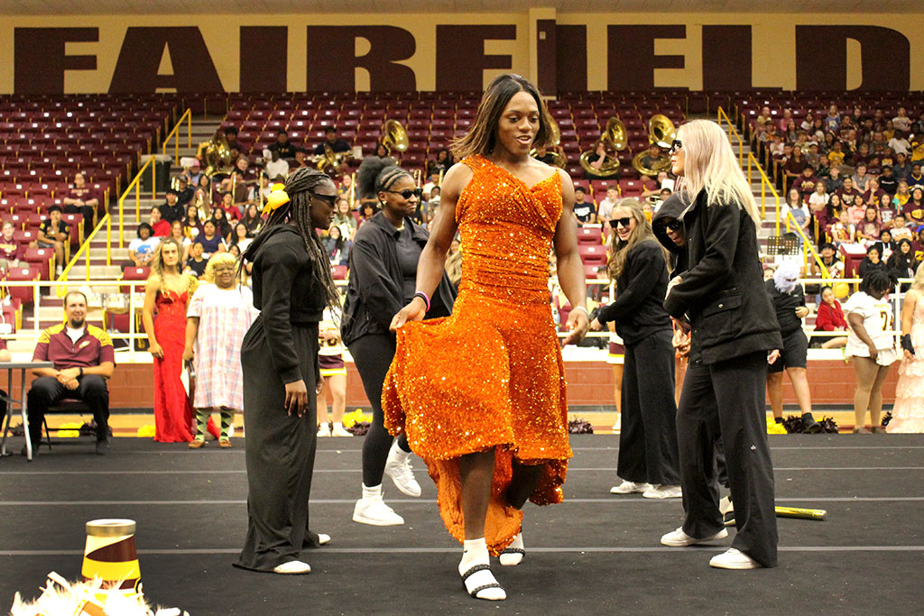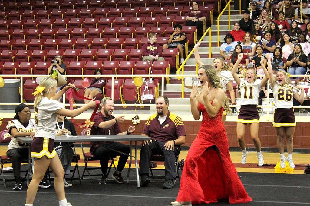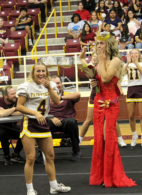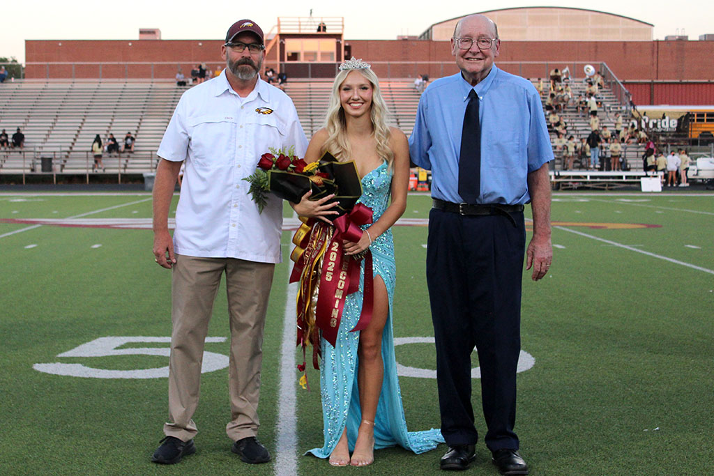 CROWNED 2025 HOMECOMING QUEEN at Fairfield High School on Friday, September 26, is senior Kaylee (KK) Williams, escorted by her grandfather, Mr. Whitaker, and stepfather, Tim Judkins. Kaylee is the daughter of Amanda Judkins.