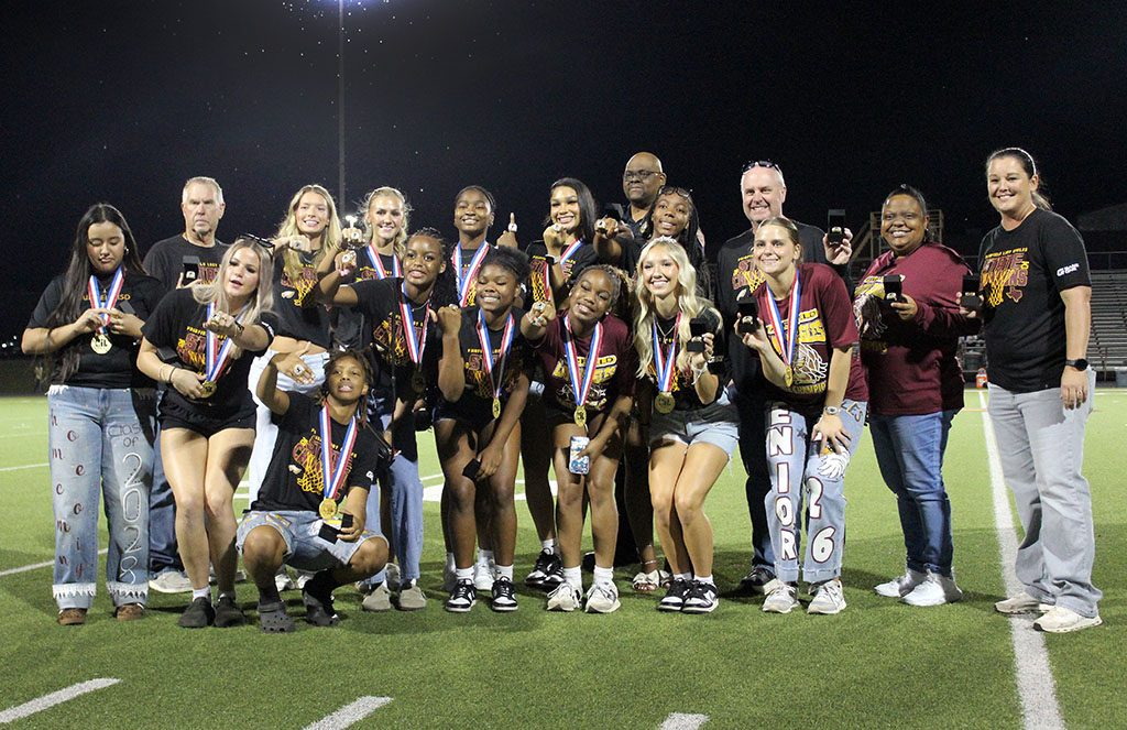 SHOWING OFF SOME BLING are members of the 2025 Class 3A Division I State Champion Basketball team. These hard-working Lady Eagle athletes shared their special moment with hometown fans and alumni during Friday’s Homecoming game.