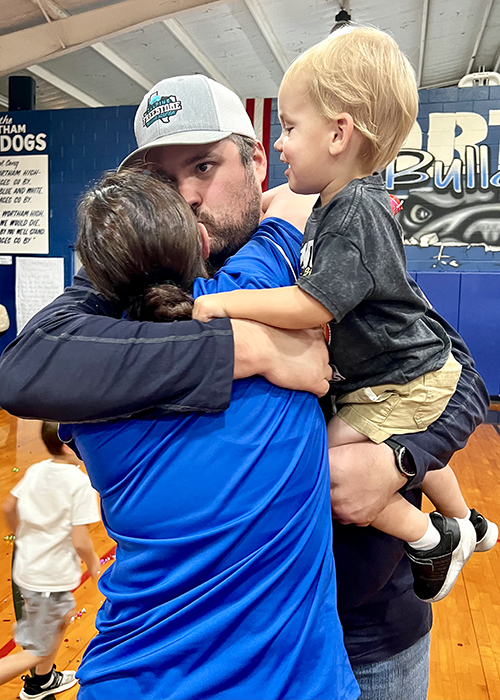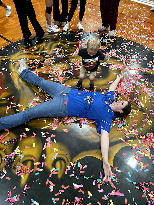 Wortham’s Head Volleyball Coach, Cheyenne Lansford, celebrates the Lady Bulldogs undefeated, District Champs with her family, community, and a whole lot of confetti!