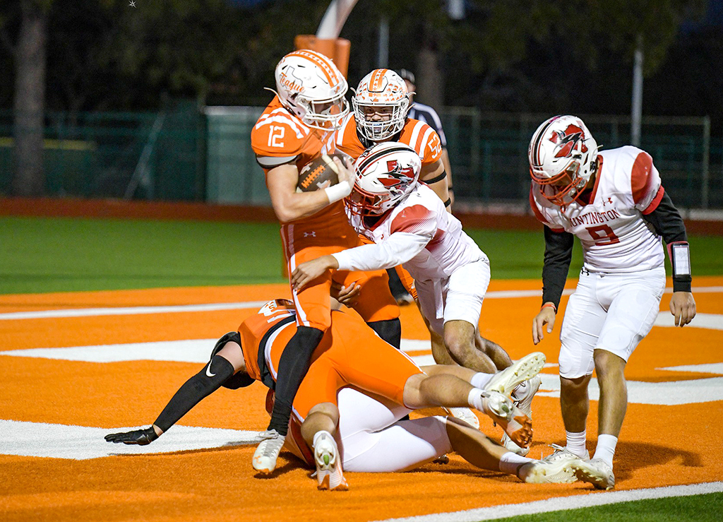 Mario Cuevas added a 17-yard touchdown in the final minute of the third quarter after Huntington’s third turnover of the game. Cuevas had both carries on the drive and it closed out the quarter and the scoring at 50-0.