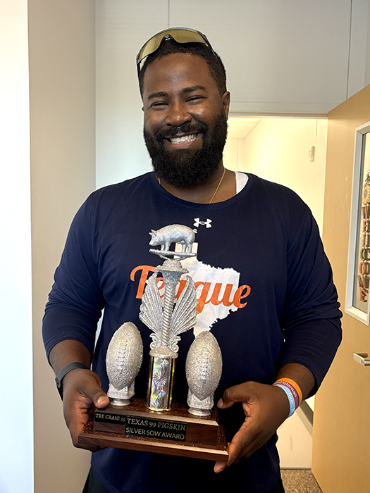 Pigskin Preview Winner at KNES Posted by admin | Nov 21, 2025 | Sports | 0 | WINNING THE 2025 KNES Texas 99 Pigskin Preview Silver Sow Award is Tre’ Craig. Congratulations! (Submitted Photo)
