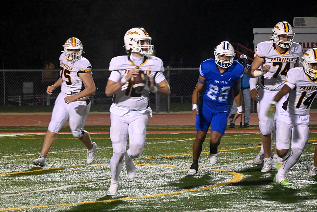 The Eagle drive was forced to punt, and the Bulldogs took over at their twenty. Their 13-play drive ended on downs and Fairfield took over. The key play for the Eagle defense was a snap over the quarterback’s head that resulted in a 12-yard loss.