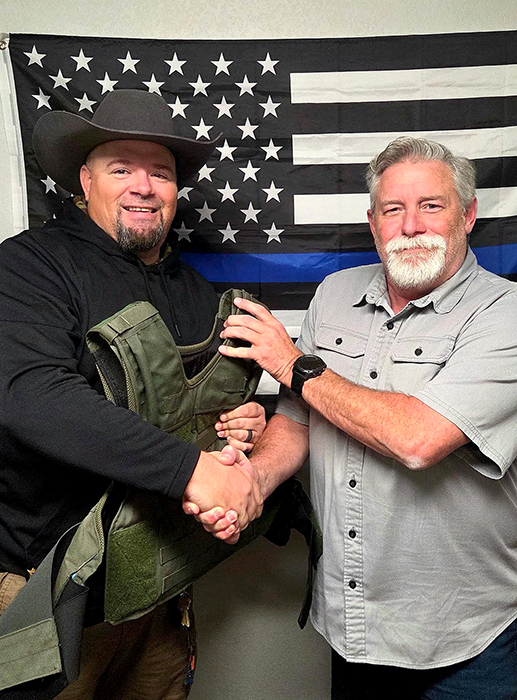 Protection Extended to Constable by Teague Chief of Police Posted by admin | Dec 10, 2025 | Courthouse News | 0 | PRESENTING BODY ARMOR to Constable Pct. 3 L.J. McAdams (left) is Teague PD Chief Philpott (right). “I would like to express sincere appreciation to Chief Philpott for this donation!” said McAdams. (Courtesy Photo)