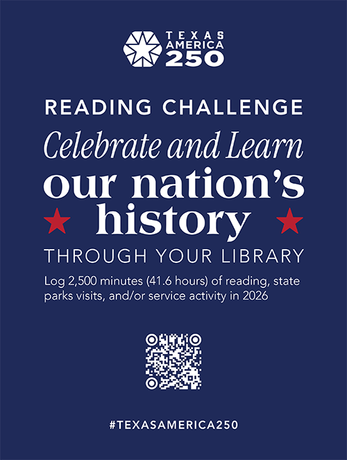 The Texas Center for the Book and the Texas State Library and Archives Commission (TSLAC) invite Texans of all ages to participate in the statewide Texas America250 Reading Challenge (www.tsl.texas.gov/america250/challenge), which launched Jan. 1 and continues through the end of the year.