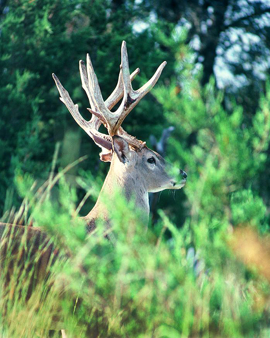 Bucks may become more careless during the rut than at other times of the season. But that doesn’t mean hunters can always expect a buck to present a perfect target. The buck pictured was visible for only an instant before moving out of sight. All skills must be employed. (Photo by John Jefferson.)